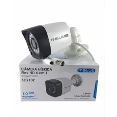 Câmera Híbrida Flex HD 720P Infravermelho SC9102 It-Blue 4 em 1 A câmera de segurança It-Blue é perfeita para sua segurança, Ideal para ambientes comerciais, residenciais e corporativos. Seu alcance infravermelho de 20 a 30 metros, a prova d'água, perfeito para ambientes externos. Tem uma resolução de HD 720P, o que permite imagens de qualidade até mesmo no absoluto escuro, possibilitando uma segurança maior. Possui 4 tecnologias: AHD, HD, TVI e HD-CVI e analógico, sendo compatível com todos os sistemas e gravadores DVR Stand Alone. Características do produto: - Resolução: 1MP 720p - Infravermelho até 30 metros, com 18 pastilhas de led - Lente de 2.8mm | Sensor 1/4 - Frequência Vertical NTCS 60Hz - Alimentação 12 volts - Tecnologia 4 em 1 HD-CVI/AHD/HD-TVI/Analógica (Compatível com todos os DVR's do mercado) - Proteção à prova d'água IP66 Conteúdo de embalagem: 01 - Câmera Híbrida Flex HD 720P Infravermelho - SC9102 It-Blue 4 em 1 01 - Manual do Usuário